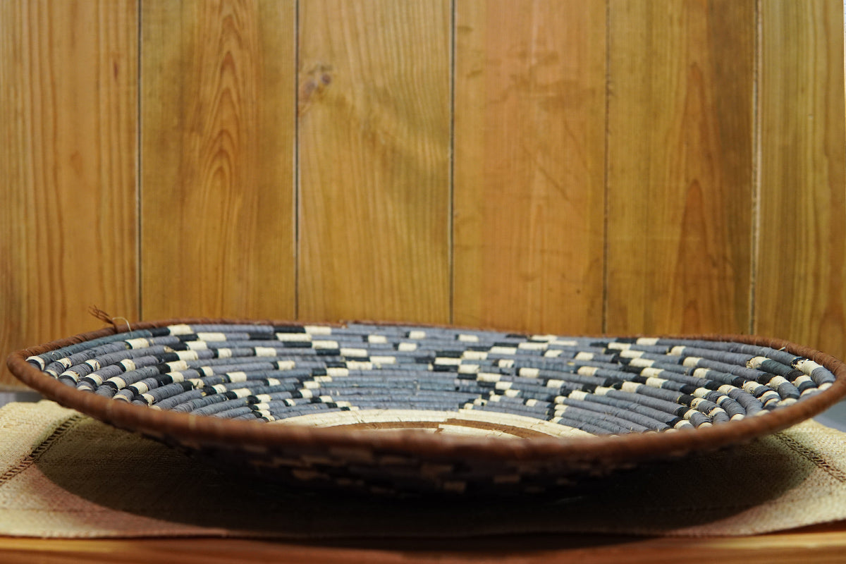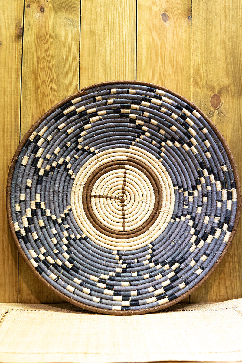Cette corbeille en raphia tissée à la main présente un design ethnique élégant avec un mélange subtil de gris clair et foncé, beige et marron. Son motif inspiré des traditions artisanales ajoute une touche de caractère et d'authenticité à votre espace.