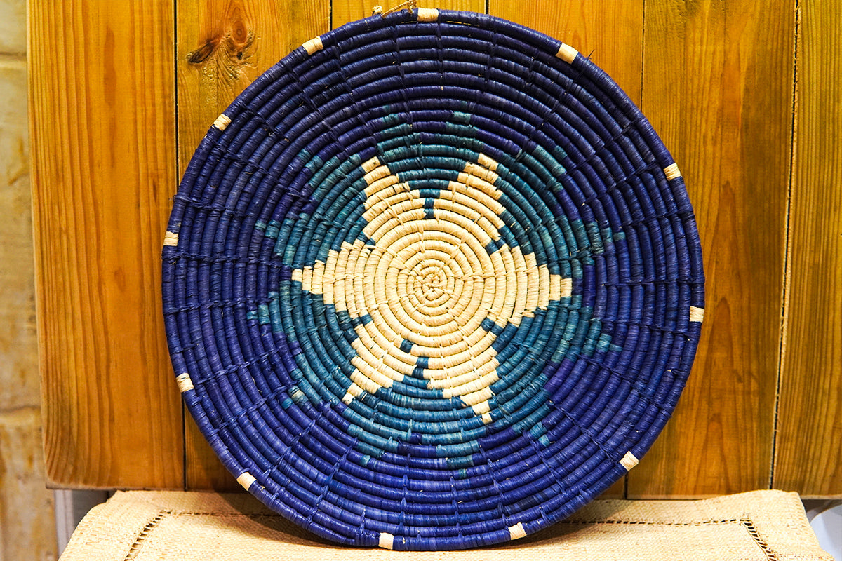 Cette corbeille en raphia, tissée à la main, se distingue par son design délicat en forme de fleur, dans des tons apaisants de bleu et de beige. Parfaite pour ajouter une touche de sérénité et d’élégance à votre intérieur, elle est idéale comme élément décoratif ou pour organiser vos petits objets.