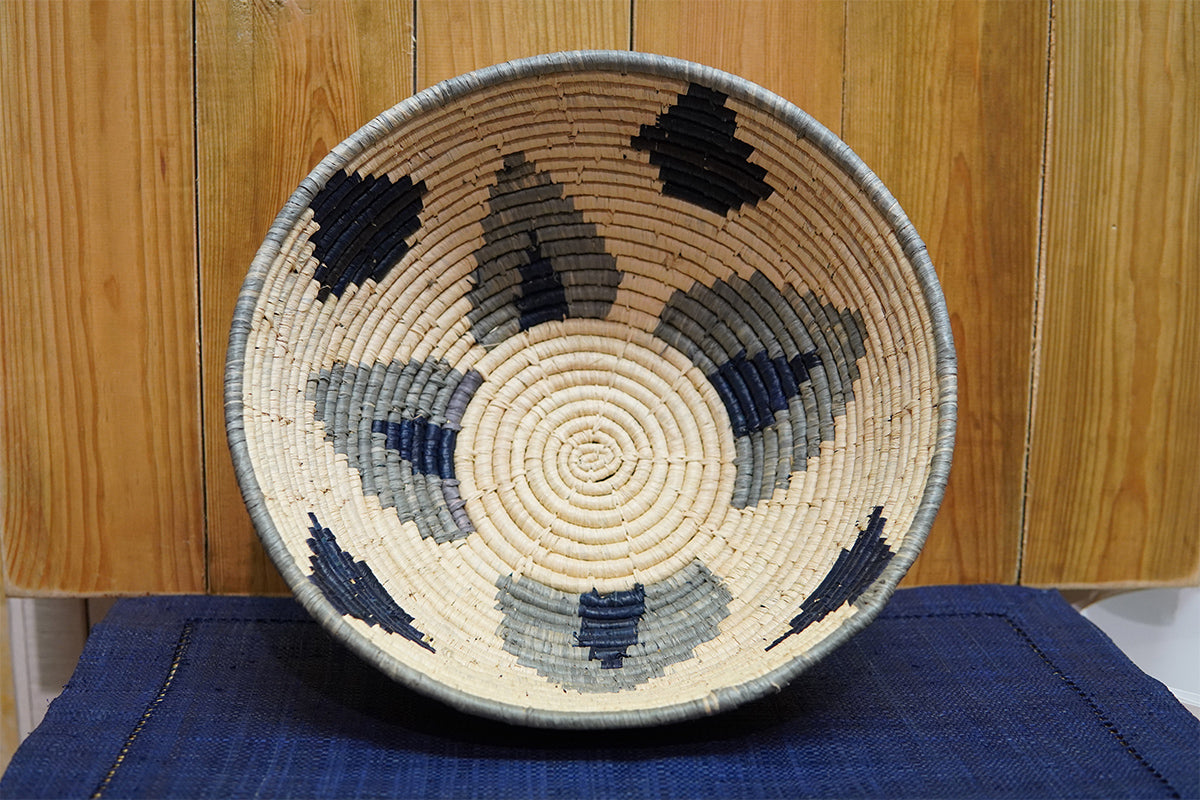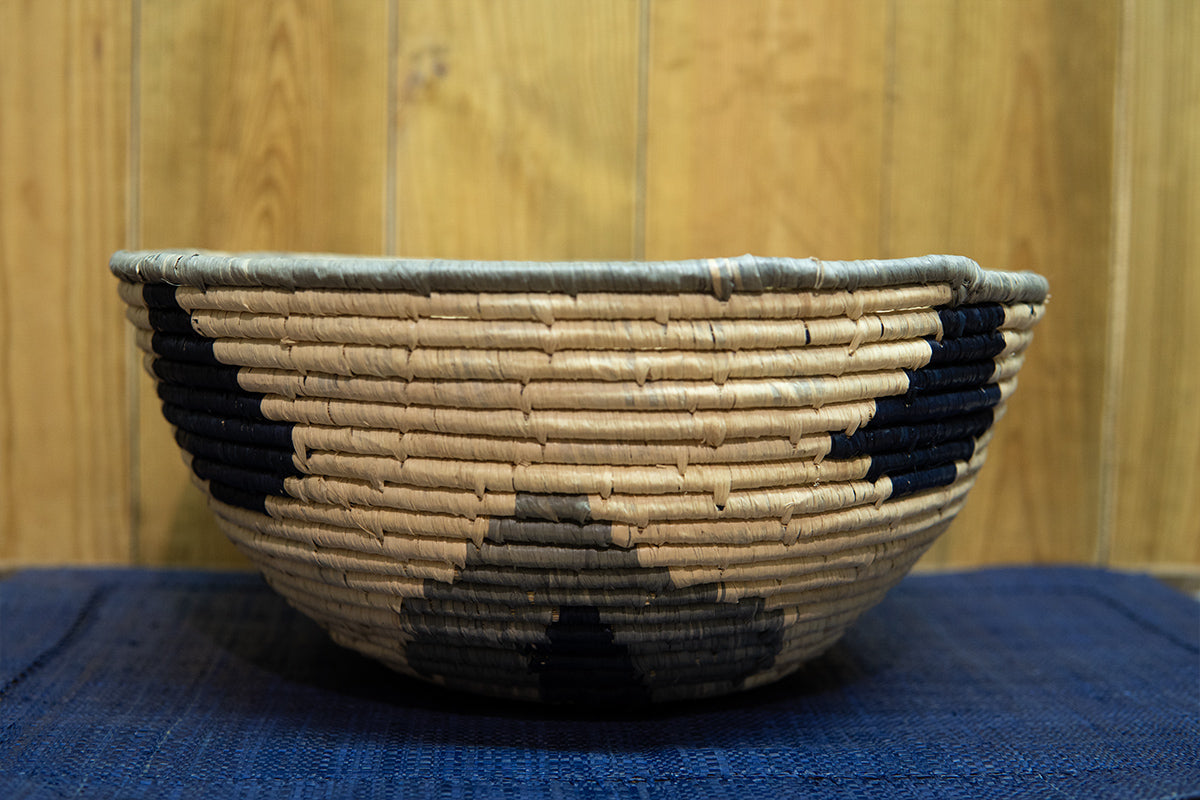 Cette corbeille en raphia tressé à la main se distingue par un design floral subtil en nuances de gris et de beige. Élégante et douce, elle habillera parfaitement une table, un mur ou une étagère, en ajoutant une touche artisanale et naturelle à votre décoration.