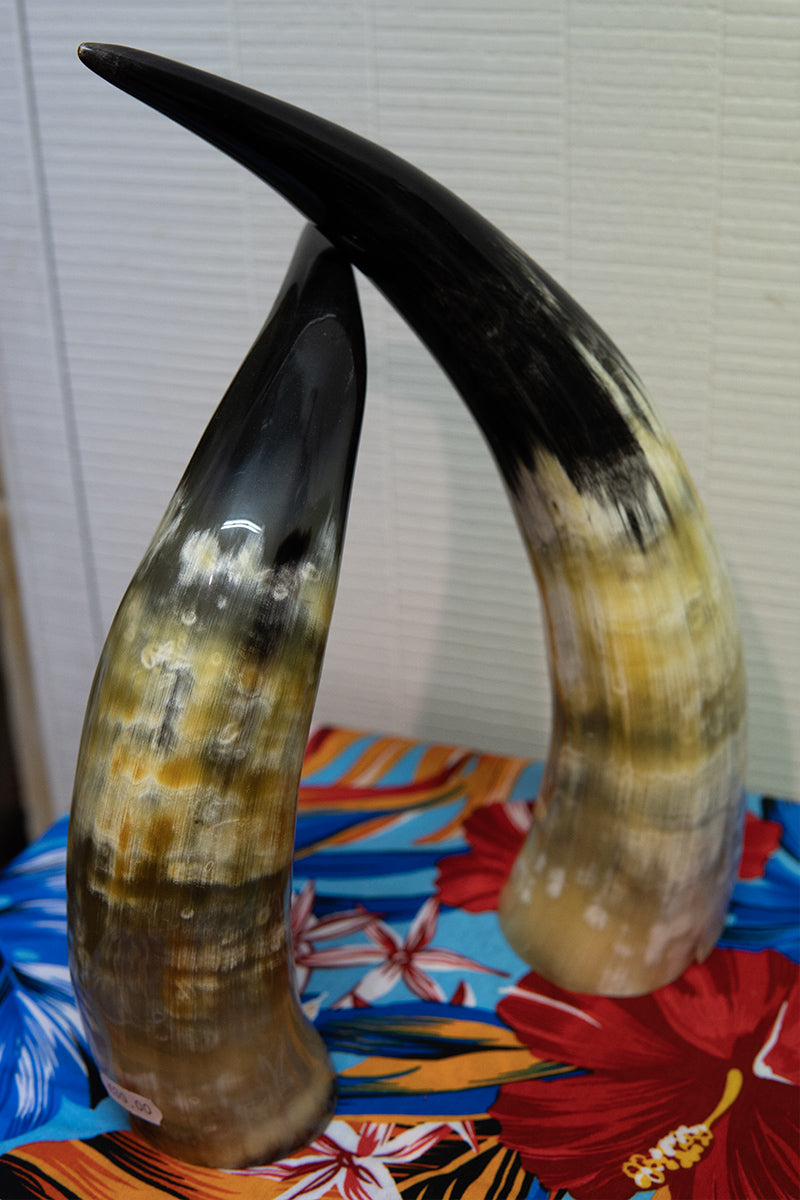 Ces cornes de zébu naturelles proviennent de Madagascar et sont soigneusement sélectionnées pour leur forme et leurs nuances uniques.