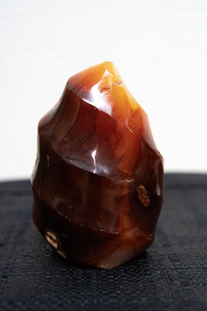Le jaspe kambaba malgache, sculpté en flamme, favorise la paix intérieure, la régénération cellulaire et le lien ancestral à la Terre.