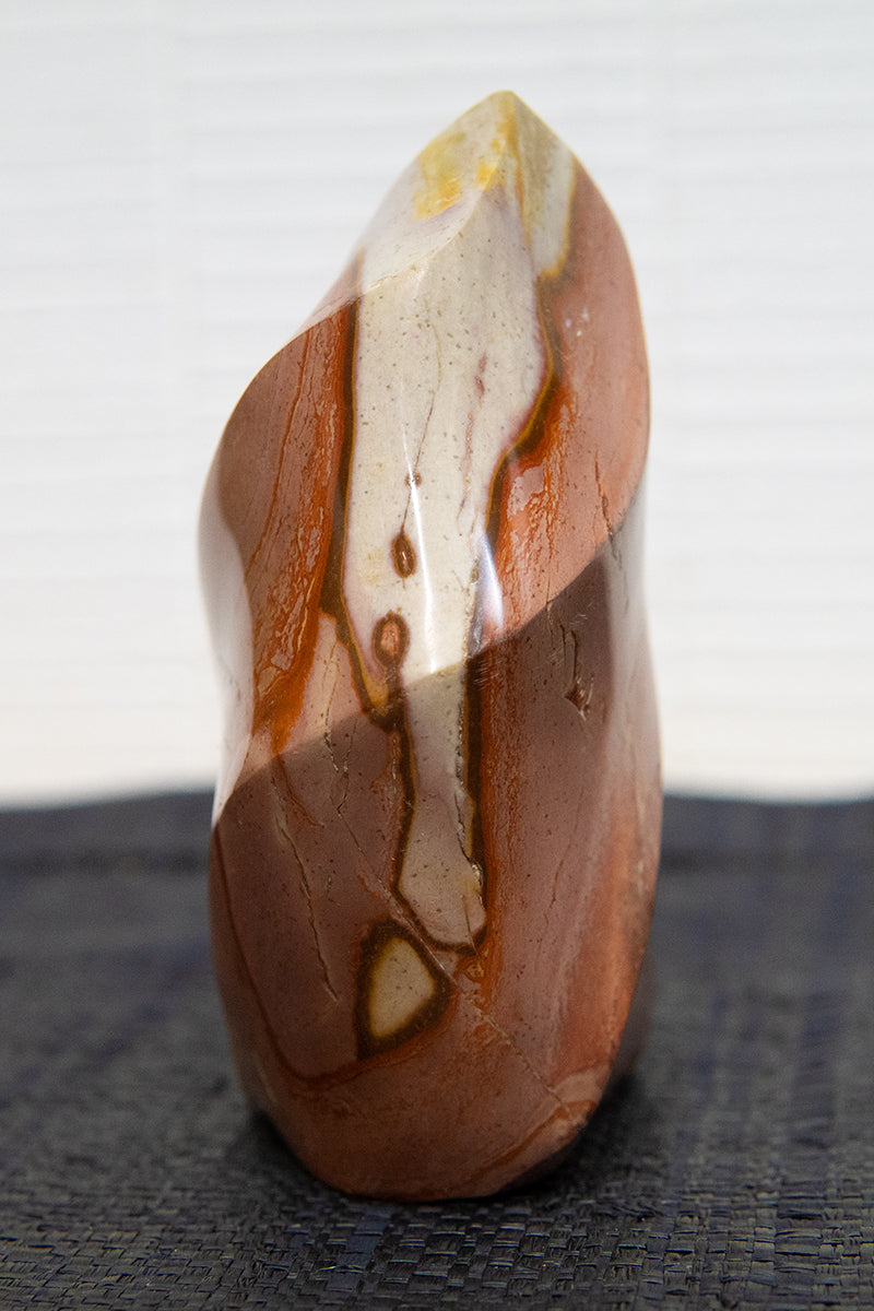 Le jaspe flamme, originaire de Madagascar, est une pierre d’ancrage intense aux nuances flamboyantes. Elle stimule la vitalité et l’endurance mentale.