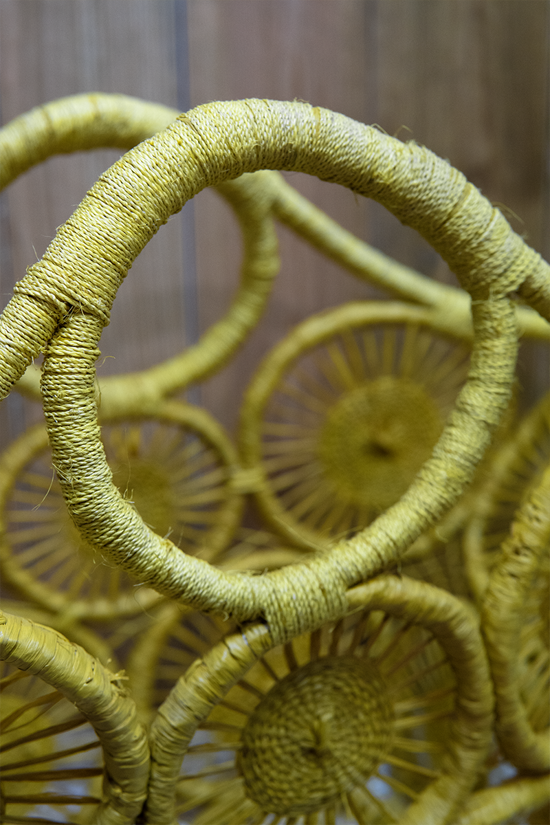 Panier raffiné en macramé tressé à la main, avec anse en corne véritable. Disponible en vert & beige, jaune, ou ton naturel. Un objet chic et artisanal, parfait pour la décoration, le rangement ou comme panier de présentation.
