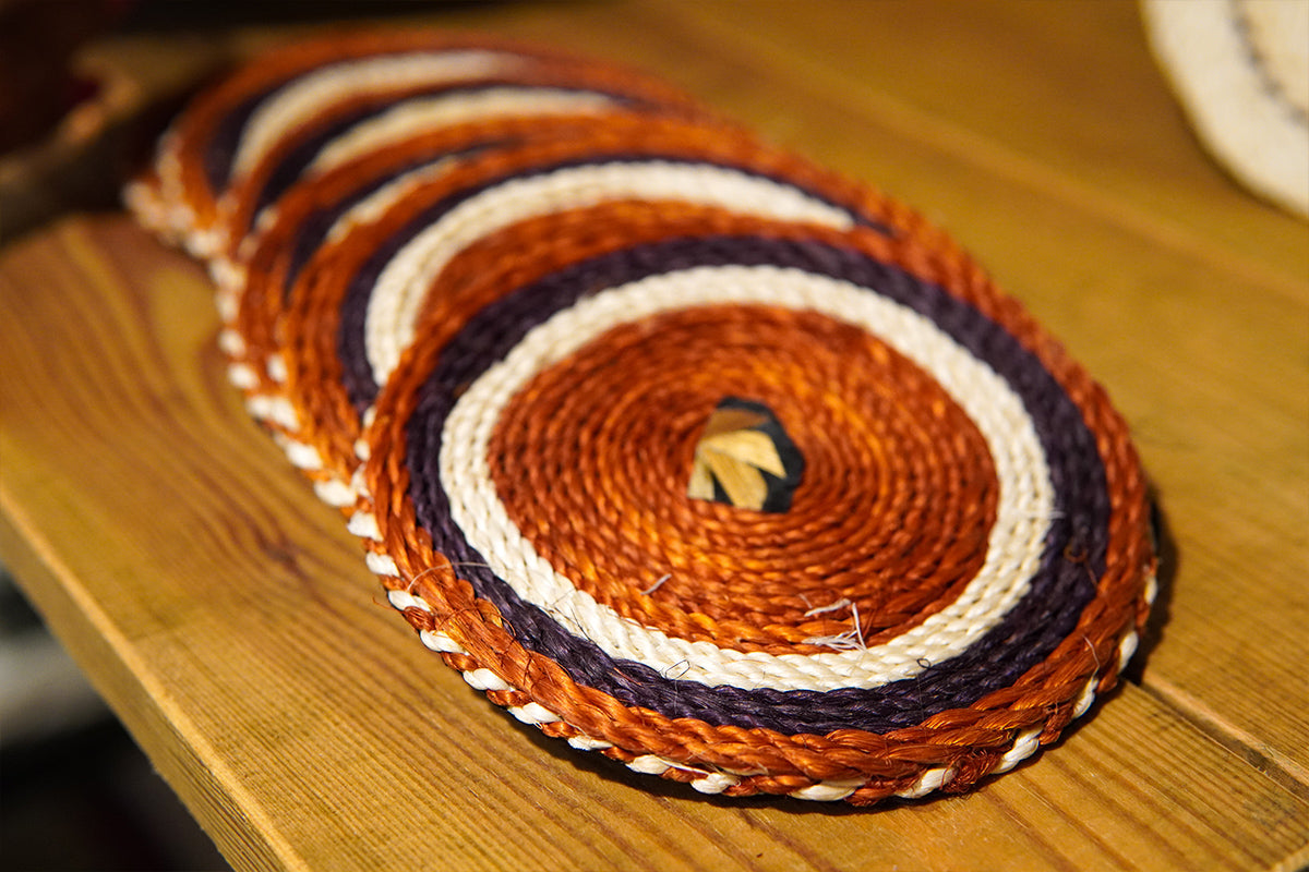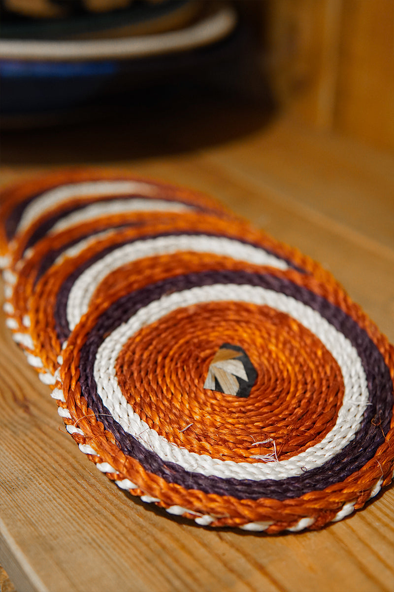 Sous-verre en raphia de Madagascar • Orange, pourpre & naturel