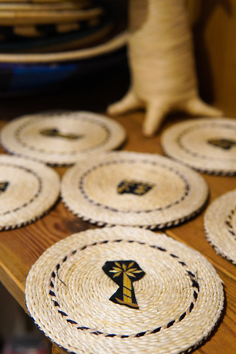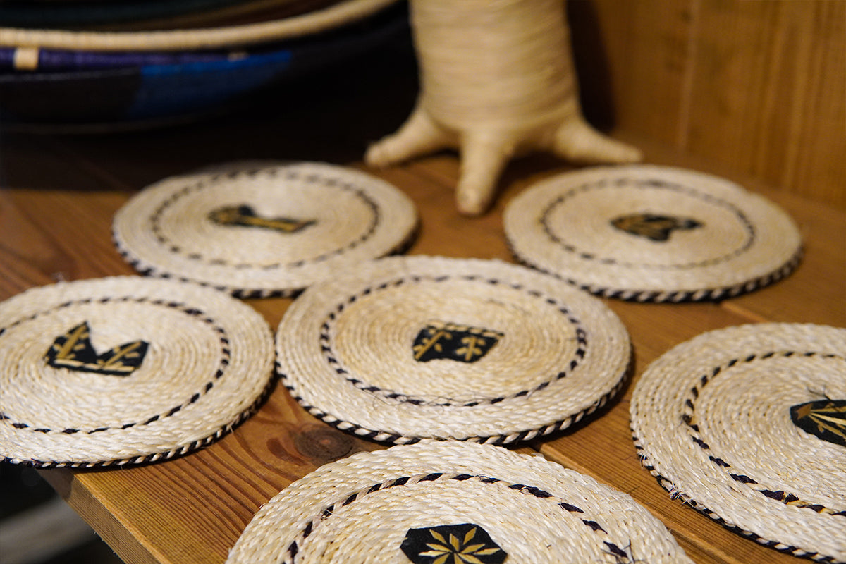 Sous-verre artisanal en raphia naturel de Madagascar, travaillé en motif cercle. Sobre et authentique, il protège vos tables tout en ajoutant une touche artisanale.